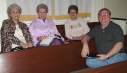 English classes on Tuesday, Wednesday, Thursday and Saturday  Happy ESL student  Pastor Victor teaching ESL class  Before choir practice: Kim Shurling our choir director  Sopranos during Wednesday night choir practice  Sewing Circle: Ann knitting  Sewing Circle: Laura crocheting  Vest in the making  Little sweater  Paula our Office Manager at work  Before choir practice